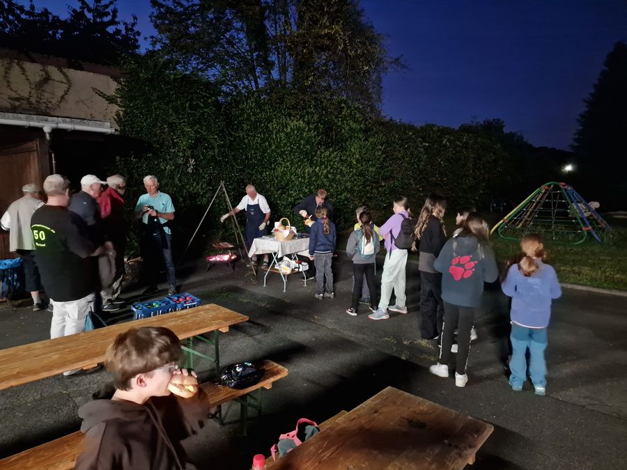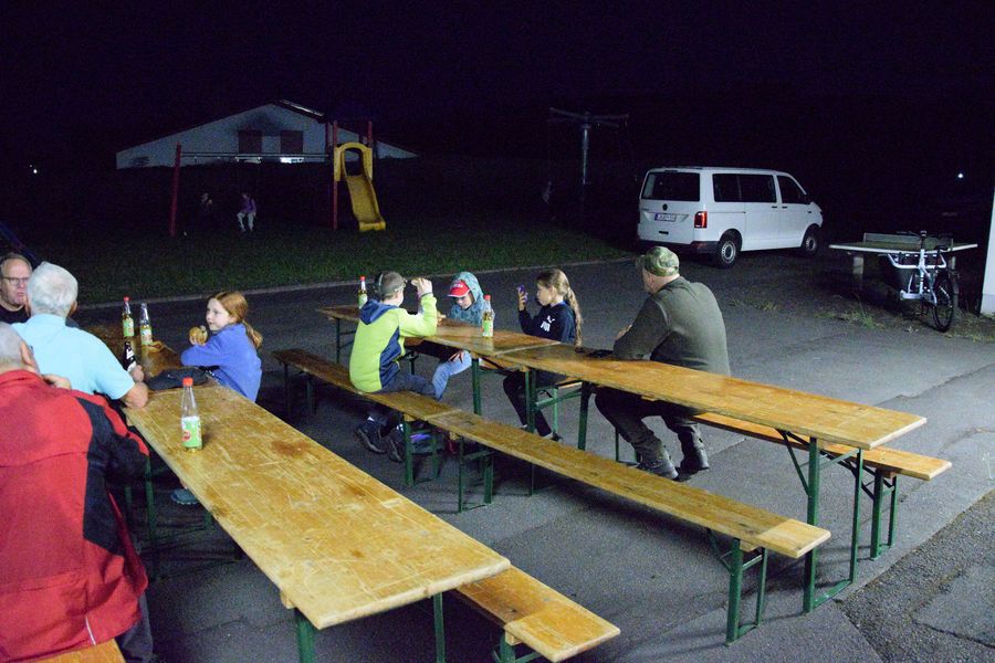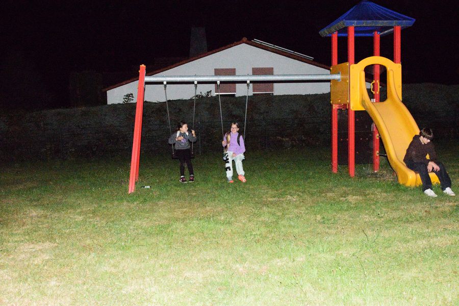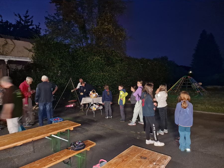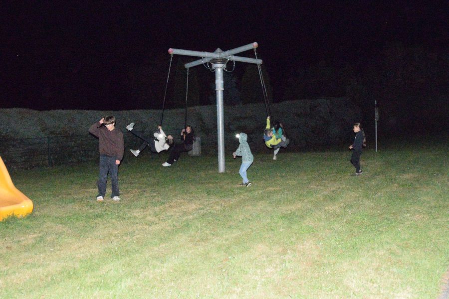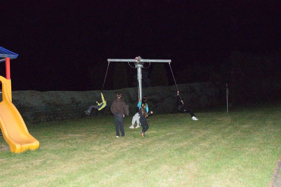 Währenddessen kamen weitere Eltern, um ihre Kinder zur Nachtwanderung zu bringen. Diesen wurde seitens der Jugendpflegerin der Gemeinde leider eine um eine Stunde verspätete Uhrzeit mitgeteilt. Wir entschieden kurzerhand, die verspäteten Kinder nicht nach Hause zu schicken. Sie durften warten und konnten zwischenzeitig den dortigen Spielplatz ausgiebig nutzen. |