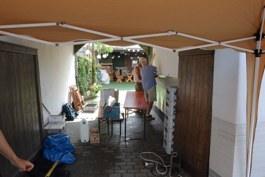Hofeinfahrt für die Zubereitung der Kartoffelpuffer bereitzustellen. |